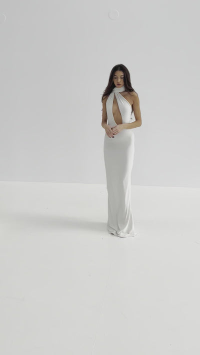 A statement gown for your next event, the Luna features a wrap neck and low cut bust & open back detailing. Self Lined