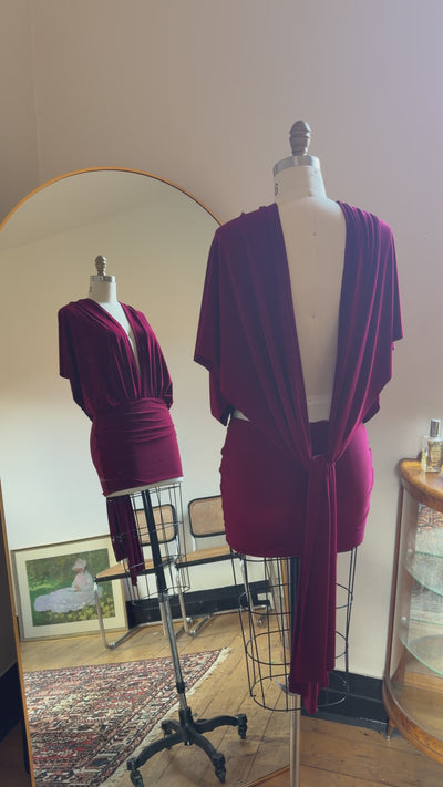 Introducing the Valentine dress crafted from our timeless jersey knit, featuring a unique gathering and off shoulder, open back silhouette. Adjust the Valentine to your desired look and fit.